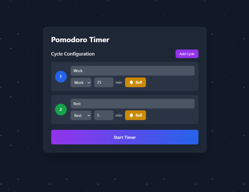 Another recurring issue is study rhythm. Students love a Pomodoro timer, and for good reason. As someone with ADHD, I know the danger of hyperfocus; you work until you crash, then you resent the work. I had made a YouTube Pomodoro timer before, complete with space music, but it was rigid and still left students in the distraction trap that is YouTube.